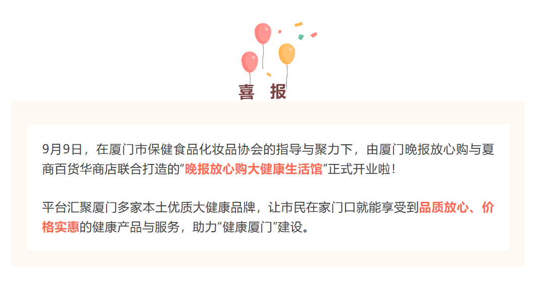 廈門晚報(bào)放心購大健康生活館正式開業(yè)啦!思健蜂膠等系列大健康保健食品受邀入駐