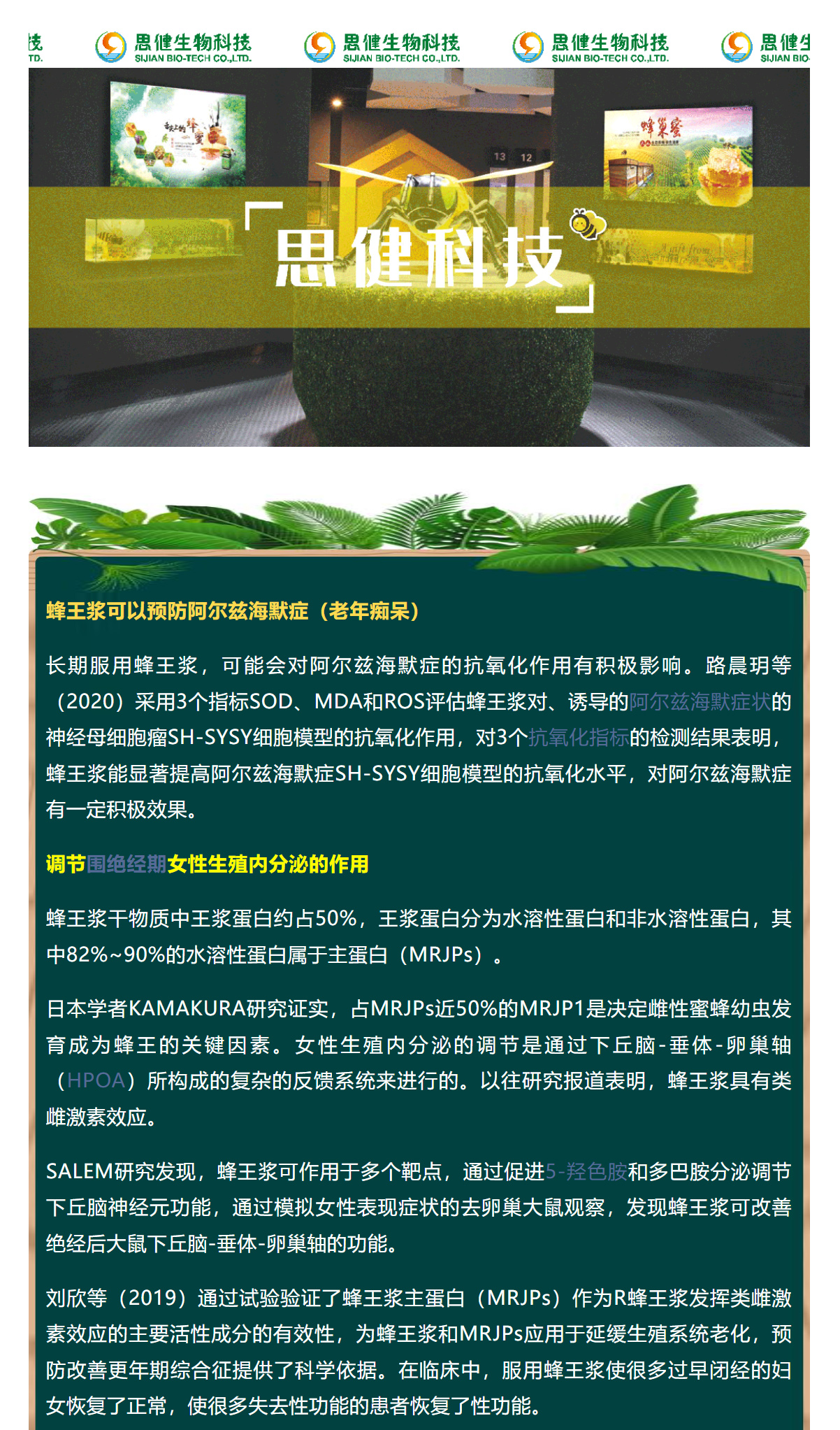 蜂王漿可以有效調節阿爾茲海默癥及更年期綜合征 !