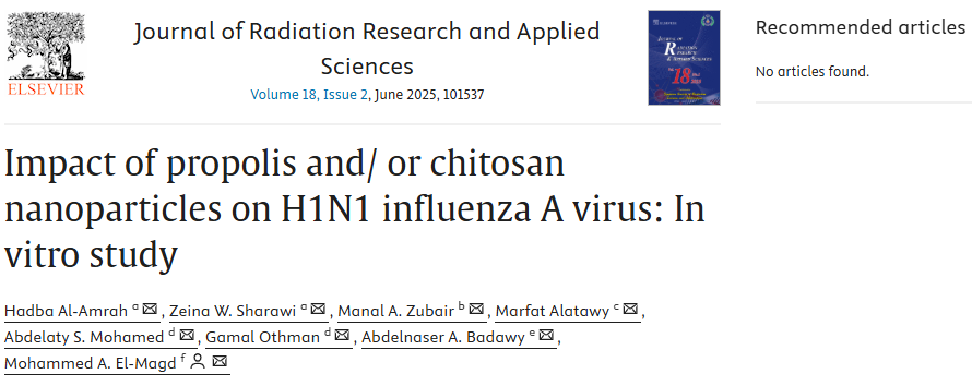 本研究內容基于發表于《Journal of Radiation Research and Applied Sciences》的論文(Impact of propolis and/ or chitosan nanoparticles on H1N1 influenza A virus: In vitro study,DOI:10.1016/j.jrras.2025.101537),由沙特阿拉伯與埃及多所大學聯合完成。